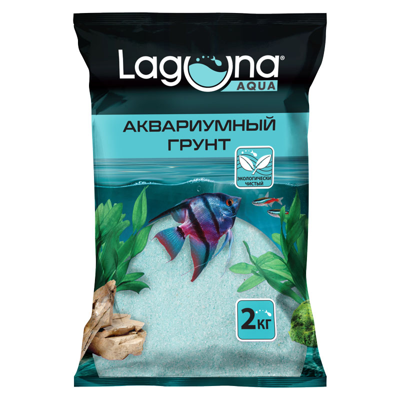 Грунт аквариумный Бирюза в пакете 2кг, фракция 2-5мм из окрашенной мраморной крошки. Грунт Laguna является экологически чистым продуктом, безвреден для обитателей аквариума, подходит для пресной и морской воды, может применяться в ландшафтном, флористическом, террариумном и аквариумном дизайне.