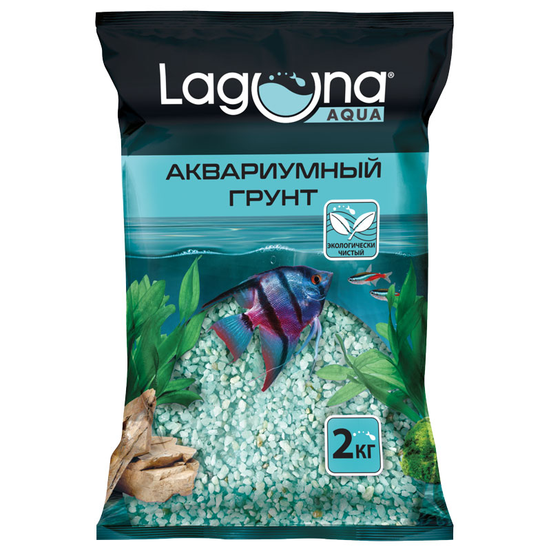 Грунт аквариумный Бирюза в пакете 2кг, фракция 5-10мм из окрашенной мраморной крошки. Грунт Laguna является экологически чистым продуктом, безвреден для обитателей аквариума, подходит для пресной и морской воды, может применяться в ландшафтном, флористическом, террариумном и аквариумном дизайне.