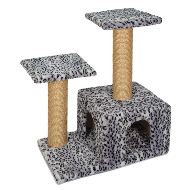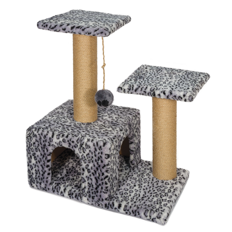 Этот функциональный игровой комплекс для кошек станет любимым местом ваших питомцев. Комплекс состоит из двух джутовых столбиков, каждый диаметром 80мм, с двумя разноуровневыми платформами (300х300мм). Дополняет изделие уютный домик с просторным входом и мягкая игрушка на резинке. Цвет изделия: бежевый, серый с пятнами, серый, бежевый леопард, серый с лапками. Размер основания: 570х350мм.