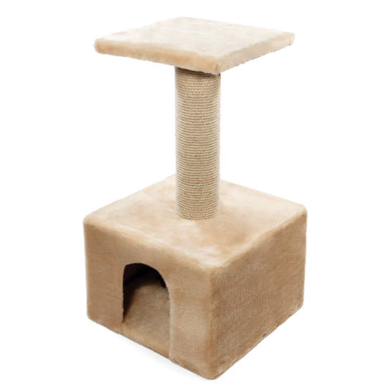 Этот небольшой домик - увлекательный аксессуар для кошек, изготовленный специально для активного, интересного и разнообразного досуга четвероного любимца. Данный мини-комплекс представляет собой квадратный домик с просторным входом, обитый мягким однотонным искусственным мехом внутри и снаружи. На крыше домика установлена вертикальная когтеточка с плотной джутовой обмоткой, которая заканчивается твердой квадратной площадкой, на которой ваш любимец сможет с комфортом отдохнуть или понаблюдать за окружающими. Размер изделия: 370*370*680мм, диаметр столбика 100мм. Цвет: бежевый, серый.