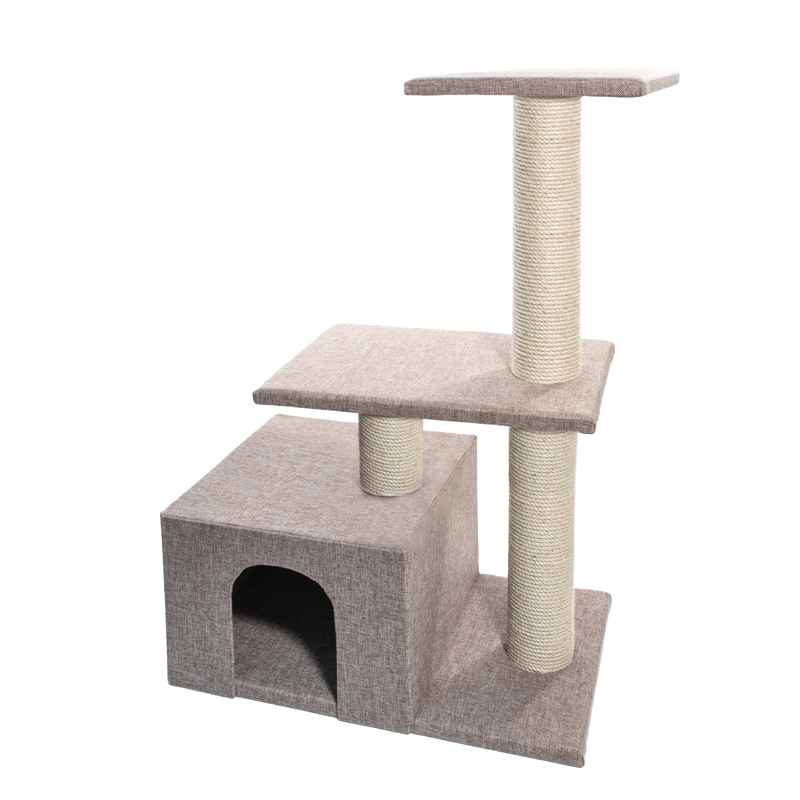 Этот функциональный игровой комплекс для кошек станет любимым местом ваших питомцев. Комплекс состоит из двух джутовых столбиков, каждый диаметром 100мм, с двумя разноуровневыми платформами. Дополняет изделие уютный домик с просторным входом. Диаметр столбика: 100мм. Цвет: бежевый.