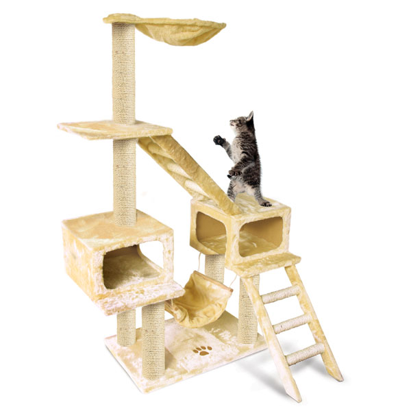 Многоярусный комплекс для кошек - идеальное решение для обеспечения досуга вашего питомца. Многоярусный парк аттракционов имеет две уютные спаленки, мягкие гамаки, лесенки и небольшую платформу наверху, которая придется по вкусу вашим озорникам. Цвет: бежевый. Размеры элементов комплекса: столбик d90х400мм, домик 360х360х250мм, вход 280х170мм. Размер комплекса: 1260х820х1510мм.