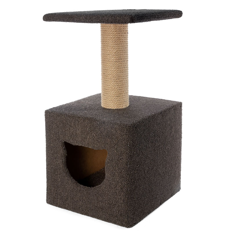 Этот увлекательный аксессуар для кошек изготовлен специально для активного, интересного и разнообразного досуга четвероногого любимца. Данный мини-комплекс представляет собой квадратный домик с просторным входом, обитый мягким однотонным ковролином внутри и снаружи. На крыше домика установлена вертикальная когтеточка с плотной джутовой обмоткой, которая заканчивается надежной квадратной площадкой, на которой ваш любимец сможет с комфортом отдохнуть или понаблюдать за окружающими. Размер: 360*360*670мм. Диаметр столбика: 10см. Цвет: коричневый