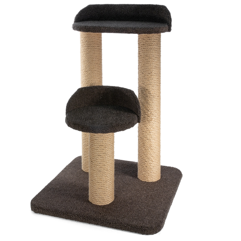 Такой игровой комплекс - лучший подарок для активного пушистого питомца. Комплекс имеет две уютные округлые площадки с бортами для отдыха на разных уровнях и три вертикальных столбика-когтеточки с плотной джутовой обмоткой. Основание комплекса, как и обе площадки для отдыха, обиты мягким ковролином благородного коричневого оттенка. Размер: 510*510*670мм. Диаметр столбика: 10см. Цвет: коричневый