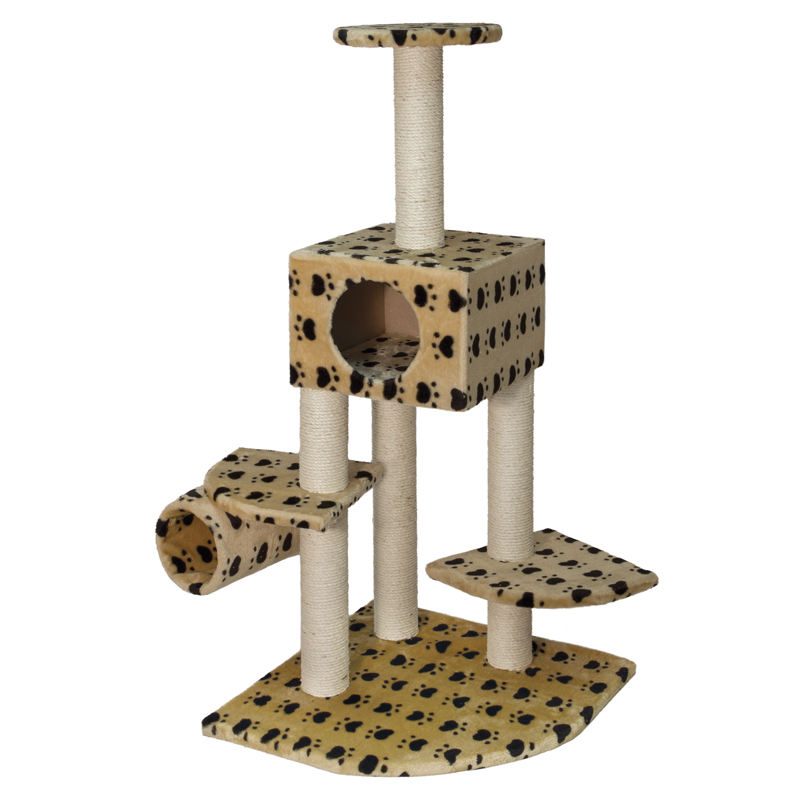 Многоуровневый городок развлечений с мягким туннелем, платформами, уютным домиком в центре (360х360х250 и h входа 190мм) и столбиками-когтеточками из сизаля (d90Х600/380/200). Ваш любимый питомец найдет здесь все необходимое для полноценной кошачьей жизни. Изделие представлено в трех вариантах расцветки: бежевый, леопардовый, темно-бежевый со следами лап. Общий размер комплекса: 760х600х1250мм.