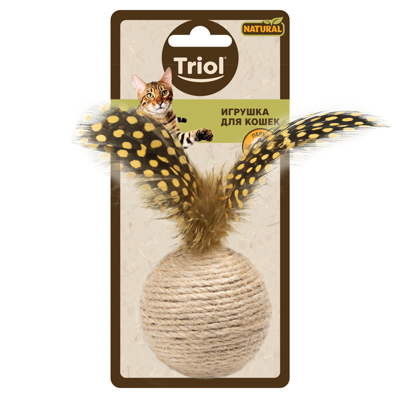 Игрушка для кошек Triol Natural " Шар с перьями " сделана из натуральных материалов с заботой о здоровье и потребности в активности кошек.