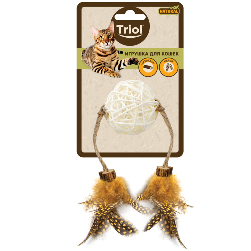 Игрушка для кошек Triol Natural "Талисман с перьями" сделана из натуральных материалов с заботой о здоровье и потребности в активности кошек.