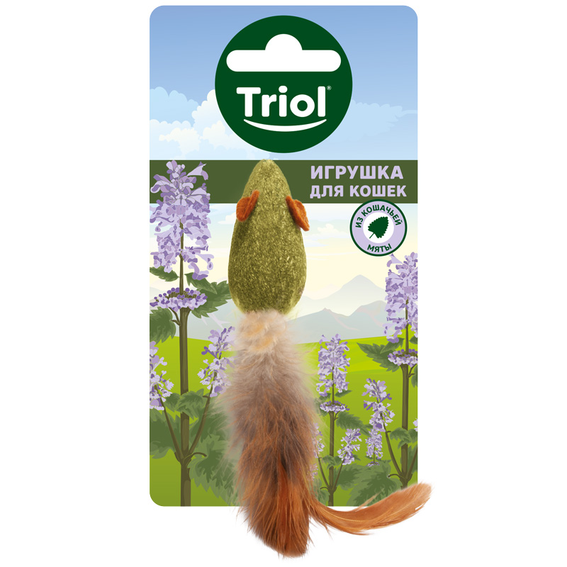 Игрушка для кошек из прессованной кошачьей мяты "Мышка с перьями", 50/110мм, Triol