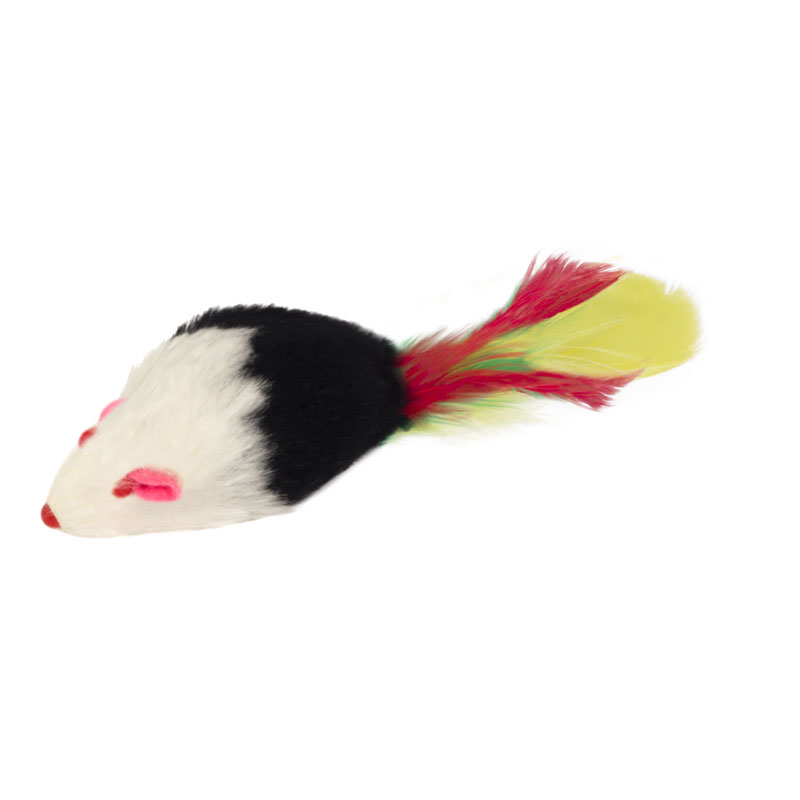 Игрушка для кошек "Мышь-погремушка с пером черно-белая", 45-50мм (уп.4шт.), Triol