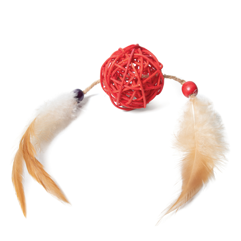 Эта оригинальная игрушка для кошек - идеальный аксессуар для активной и разнообразной игры с пушистым питомцем. Яркая и функциональная, она выполнена в виде шара и обязательно привлечет внимание пушистого питомца благодаря веревочкам с перьями на концах. С такой игрушкой маленькие котята хорошо развиваются, а взрослые животные держат себя в тонусе и оттачивают охотничьи навыки без вреда для мебели и предметов интерьера. Цвет: красный со светло-коричневым. Размер: d50/200мм.