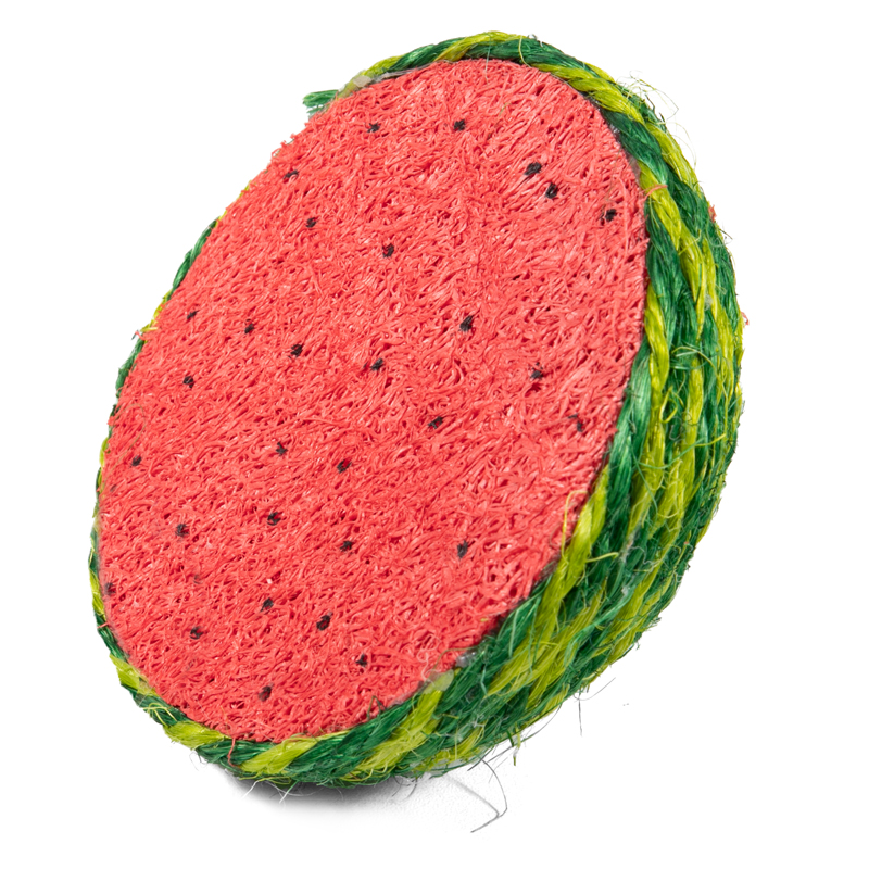 Порадуйте своего питомца игрушкой для мелких животных из люфы "Арбуз"! Во время игры происходит мягкая механическая очистка зубных поверхностей, поскольку крупноволокнистая структура игрушек идеально подходит для снятия зубного налета. При регулярном использовании они позволяют поддерживать здоровье полости рта питомца. Игрушка изготовлена из натурального материала - люфы, растения из семейства тыквенных, а, значит, абсолютно безопасна для вашего питомца. Цвет: красно-зеленый. Размер: d100мм.