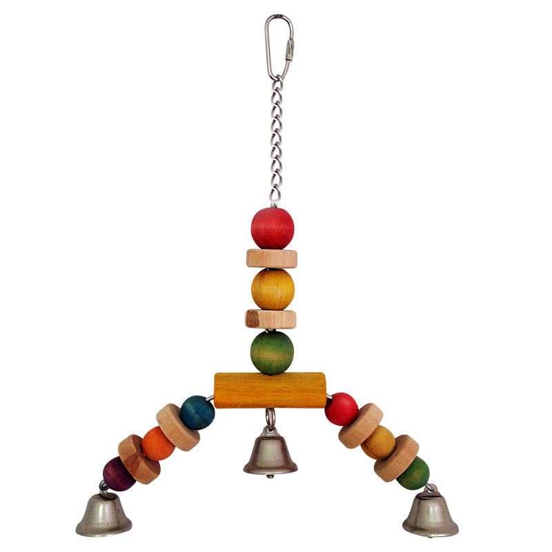 Игрушка для птиц -подвеска в виде деревянных фигур с колокольчиками. Крепление: карабин. Цвет: в ассортименте. Размер: 250*220мм.