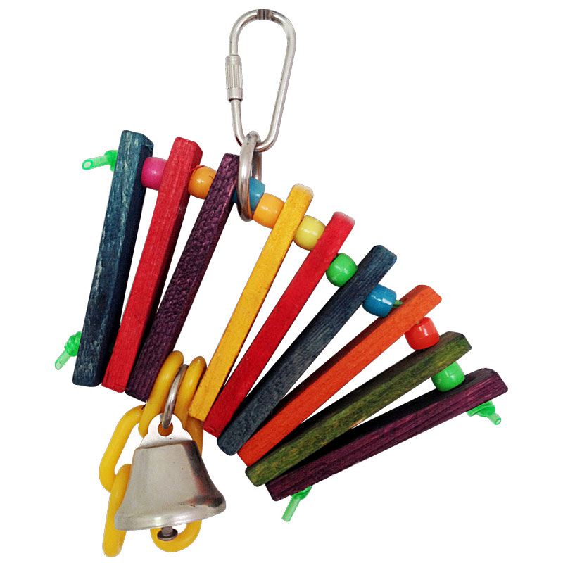 Игрушка для птиц в виде деревянного разноцветного ксилофона с колокольчиком. Крепление: карабин. Цвет: в ассортименте. Размер: 155*120мм.