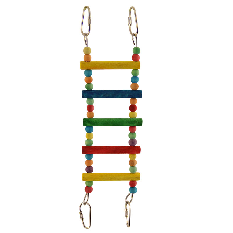 Игрушка для птиц в виде деревянной разноцветной лестницы и бус. Крепление: 4 карабина. Цвет: в ассортименте. Размер: 280*75мм.