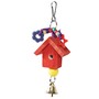 Игрушка для птиц в виде деревянного скворечника с колокольчиком. Крепление: карабин. Цвет: в ассортименте. Размер: 175*50*20мм.
