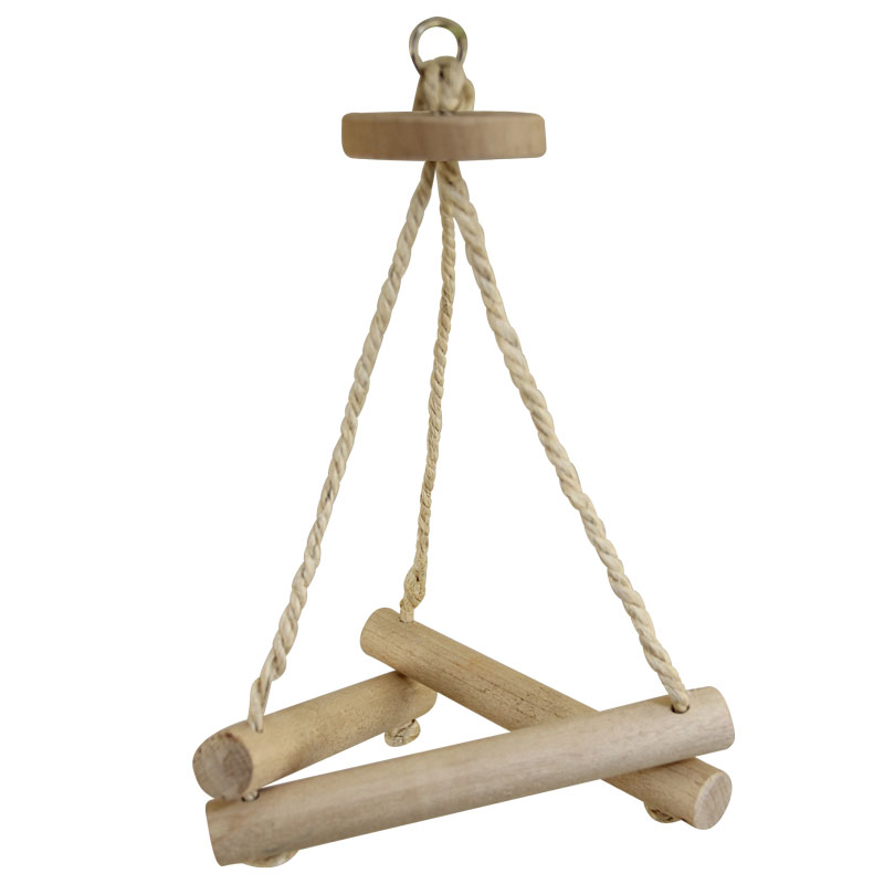 Игрушка для птиц в виде веревочных качелей форме тругольника. Цвет дерева. Размер: 325*160*160мм.