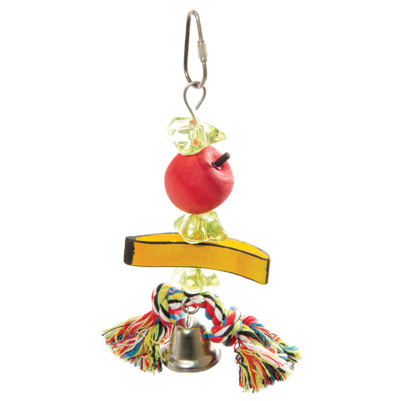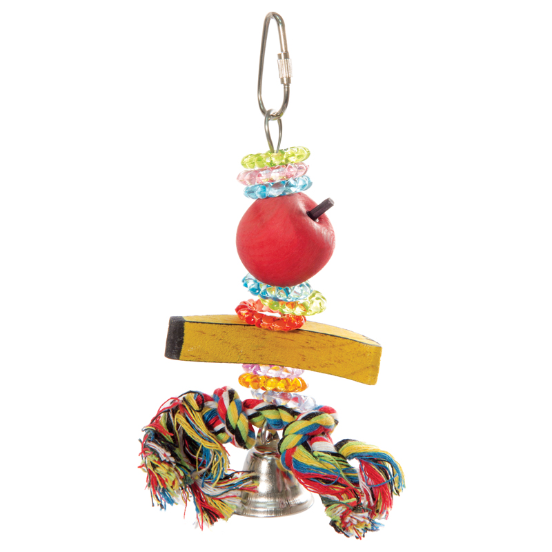 Игрушка для птиц, состоящая из деревянных фруктов и пластиковых колец, с веревкой на конце, которую так любят теребить пернатые питомцы. Крепление: карабин. Цвет: в ассортименте. Размер: 160/190*75мм