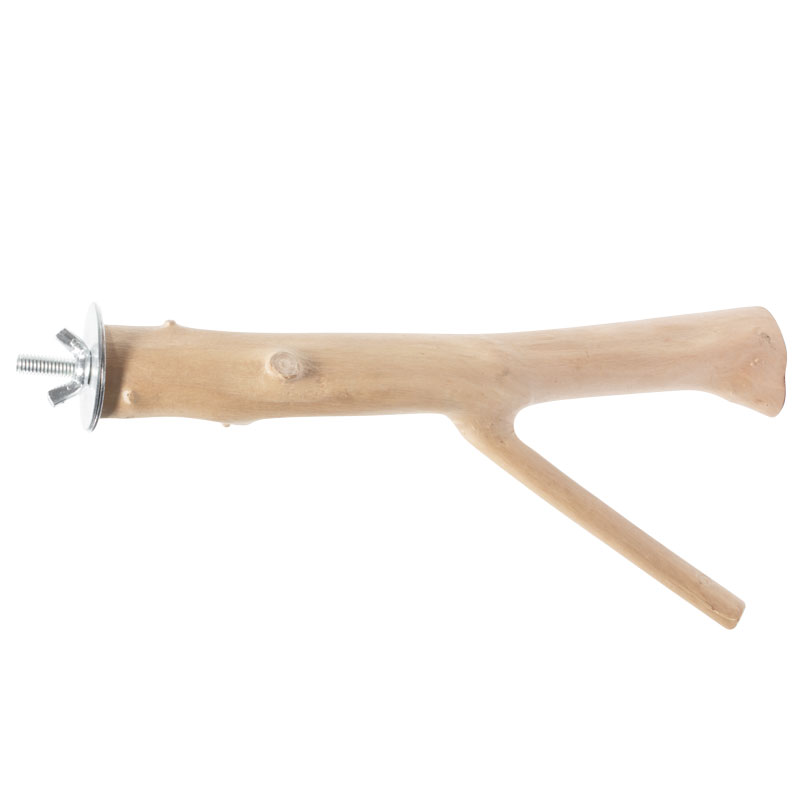 Удобное одностороннее винтовое крепление с помощью металлического зажима цепляется к прутьям клетки в любом месте по вашему выбору. Цвет: натуральное дерево. Размер: d20-30*200мм.