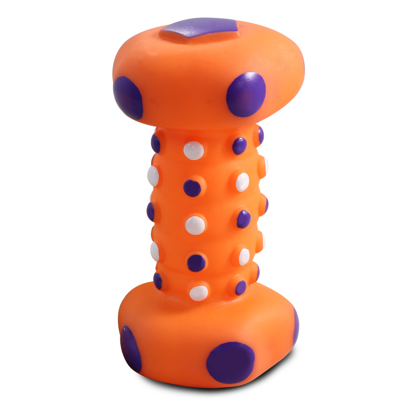 Виниловые игрушки помогают собаке снять стресс, если хозяина нет дома, массируют десны, а также способствуют формированию правильного поведения у собаки. Игрушка легко моется и не требует особого ухода. Игрушка "Гантель" станет прекрасным подарком для неугомонного четвероногого питомца. При переворачивании игрушка издает звук, привлекающий внимание собаки. Цвет: оранжевый. Размер d85*165мм.
