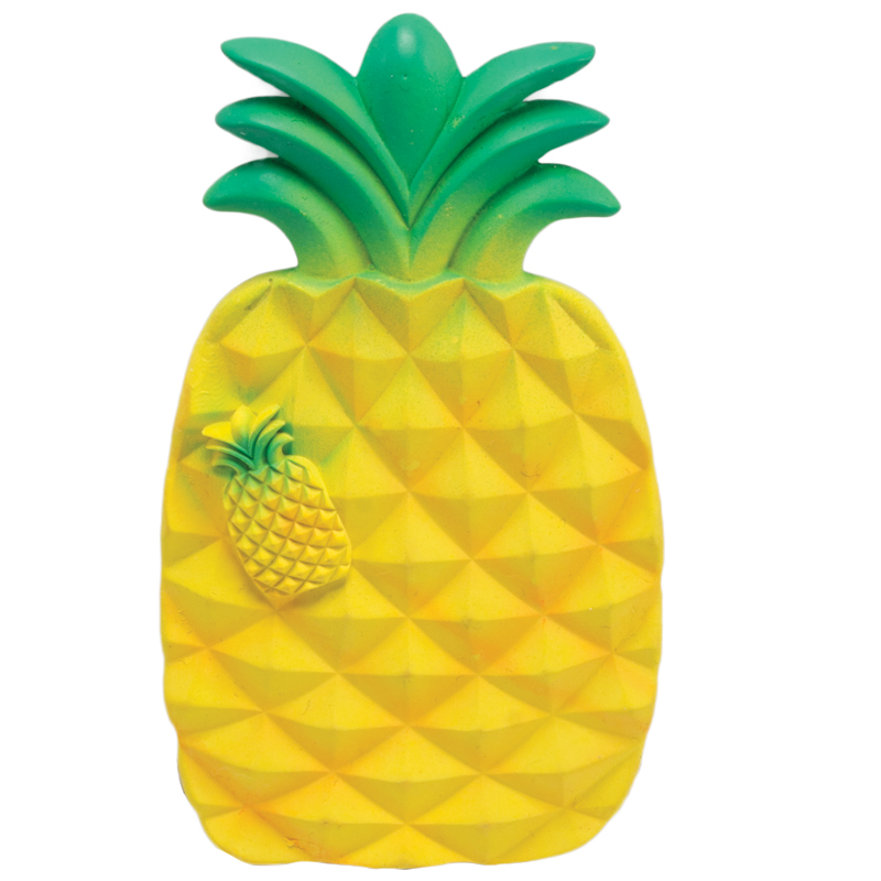 Эта оригинальная яркая игрушка в форме ананаса изготовлена из натурального латекса – экологически чистого материала, получаемого из сока каучукового дерева. Натуральный каучук активно используется при производстве игрушек для детей – он гипоаллергенен, обладает антибактериальными свойствами, а потому абсолютно безопасен для людей и животных. Такие игрушки отличаются повышенной прочностью и являются прекрасным тренажером для зубов четвероногих питомцев. Изделие отлично подходит для собак мелких и средних пород, а также - для щенков в период прорезывания зубов. Цвет: желтый. Размер: 115*65*10мм.