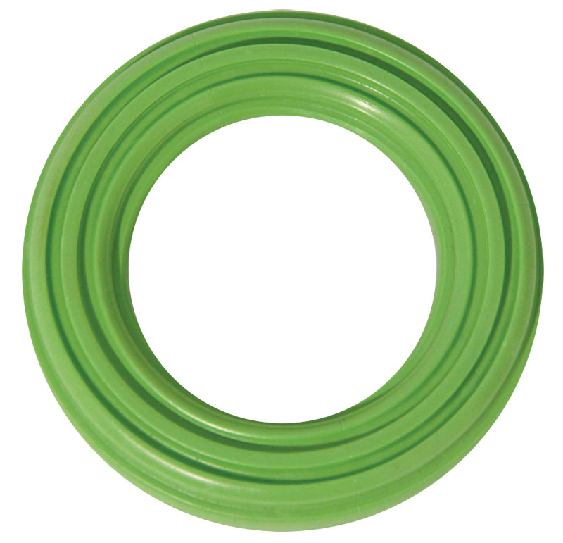 Рифленое каучуковое кольцо - отличный тренажер для развития активного и здорового питомца. Оно помогает развивать крепкие и здоровые зубы, улучшает эластичность десен, укрепляет стенки ротовой полости и помогает вашему питомцу проводить время с пользой в интересной игре. Гибкий, эластичный и прочный материал, благодаря своим природным свойствам, абсолютно безопасен для питомца и не вызывает проблем с желудком, а специальные резные дуги на кольце улучшают степень укрепления десен между зубами. Диаметр изделия - 8,5 см. Варианты расцветок: зеленый, голубой, красный, фиолетовый, синий, бирюзовый, серый, салатовый.