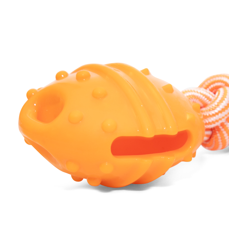 Игрушка для собак из термопластичной резины "Апельсин с веревкой", d77/290мм, Triol