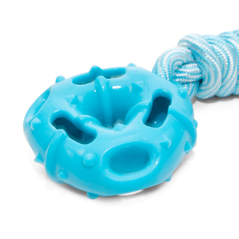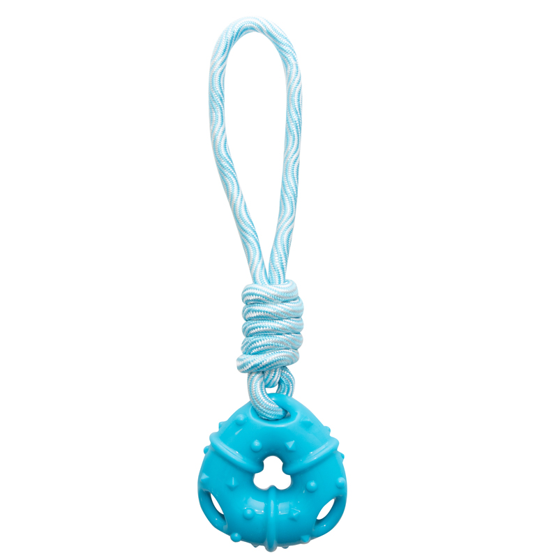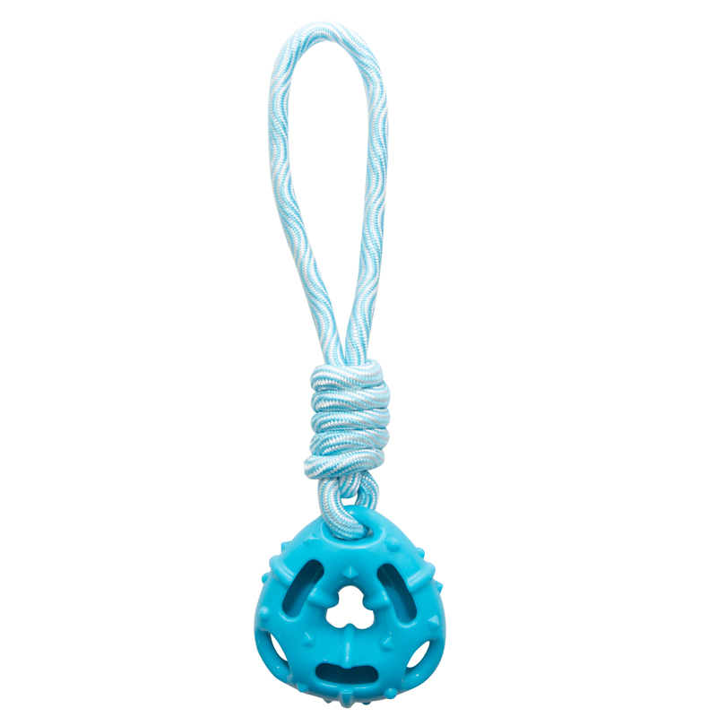 Фактурная игрушка для собак из термопластичной резины в форме баклажана поможет поддерживать в тонусе жевательные мышцы, укреплять и очищать зубы питомца, а отверстия под лакомства позволят на длительное время увлечь питомца поиском вкусняшек. Термопластичная резина сохраняет упругость и эластичность даже при низких температурах и отличается длительным эксплуатационным периодом. Такой материал мало подвержен химическому или термическому воздействию, не токсичен, легко моется и не требует особого ухода. А благодаря наличию веревки эта игрушка разнообразит досуг питомца и послужит функциональным аксессуаром для игры в перетяжки. Цвет изделия: голубой. Размер изделия: 80мм, с веревкой - 290мм.