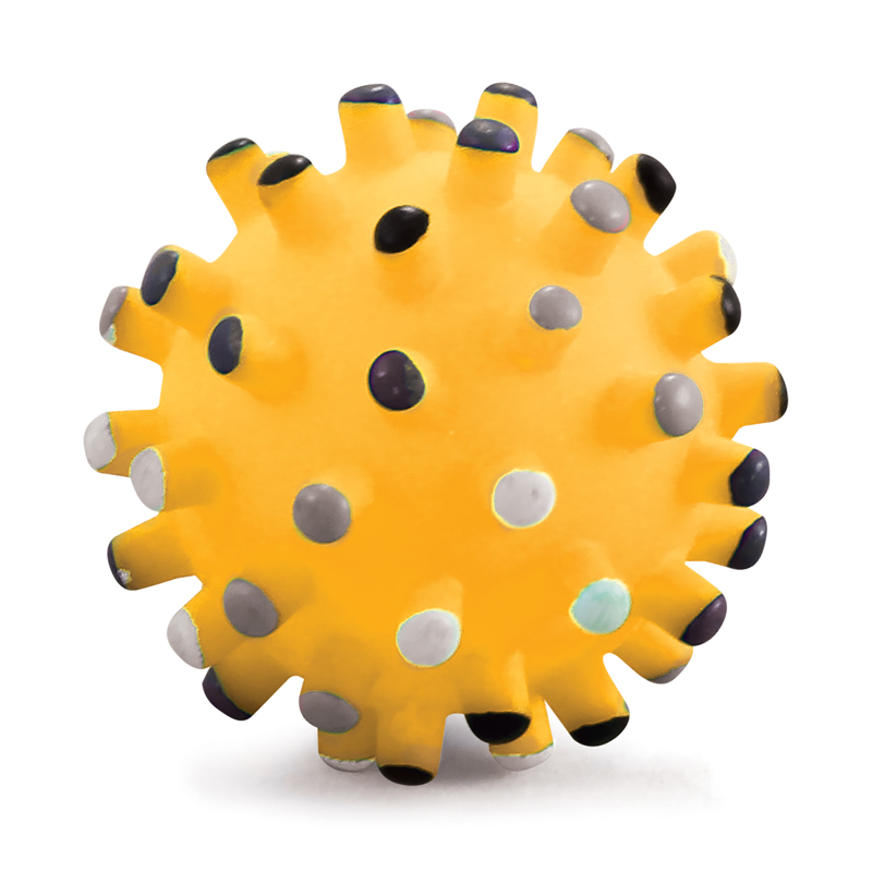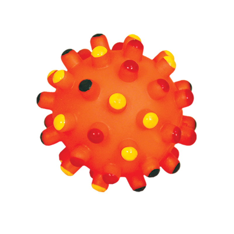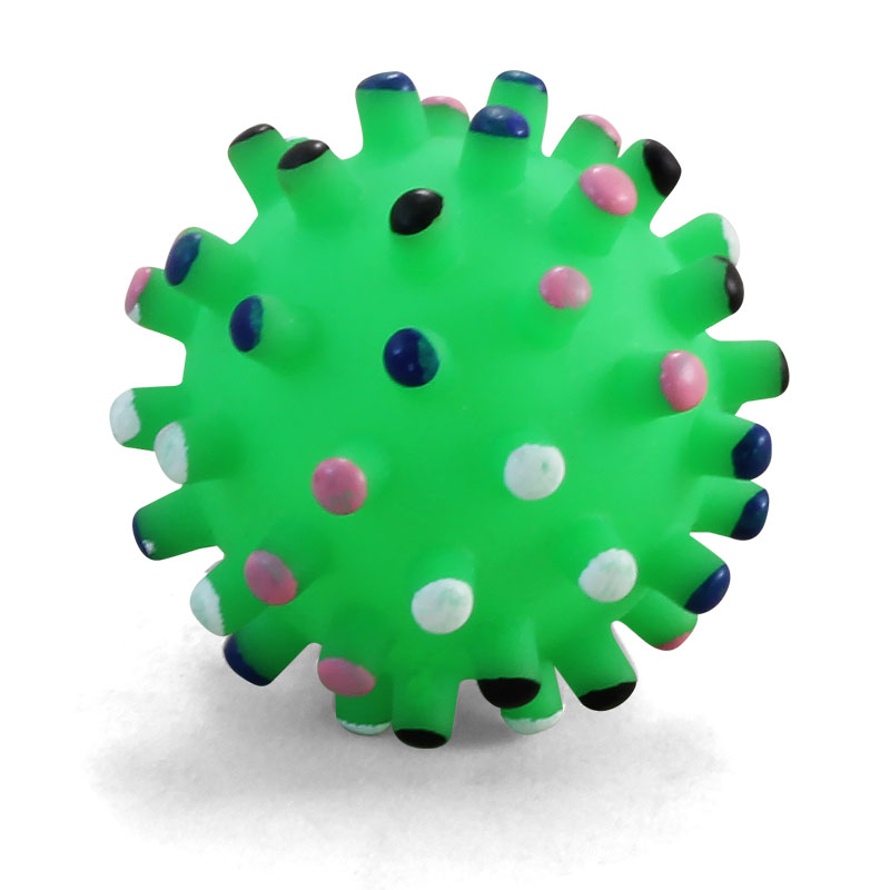 Виниловые игрушки помогают собаке снять стресс, если хозяина нет дома, массируют десны, а также способствуют формированию правильного поведения у собаки. Игрушка легко моется и не требует особого ухода. Мяч с шипами станет прекрасным подарком для неугомонного четвероногого питомца. С пищалкой внутри. Цвет: зеленый, оранжевый, желтый, коралловый, голубой, розовый, лимонный. Размер d75мм