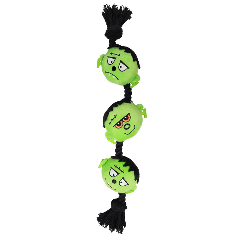 Забавная игрушка для собак "Франкенштейн" несомненно привлечет внимание питомцев и всех окружающих своим необычным дизайном и контрастной расцветкой! Головы с "пищалкой" внутри выполнены из мягкого плюша, а крепкая веревка - из хлопка. Прочная и функциональная, такая игрушка отлично подходит для дрессировки и натаскивания собак, которые так любят грызть и трепать мягкие игрушки, кусать и носить их в зубах. Игрушка "Франкенштейн" доставит огромную радость собакам и их заботливым владельцам и послужит отличным подарком на Хэллоуин. Цвет: черно-зеленый. Размер: d80/490мм.