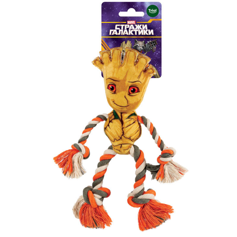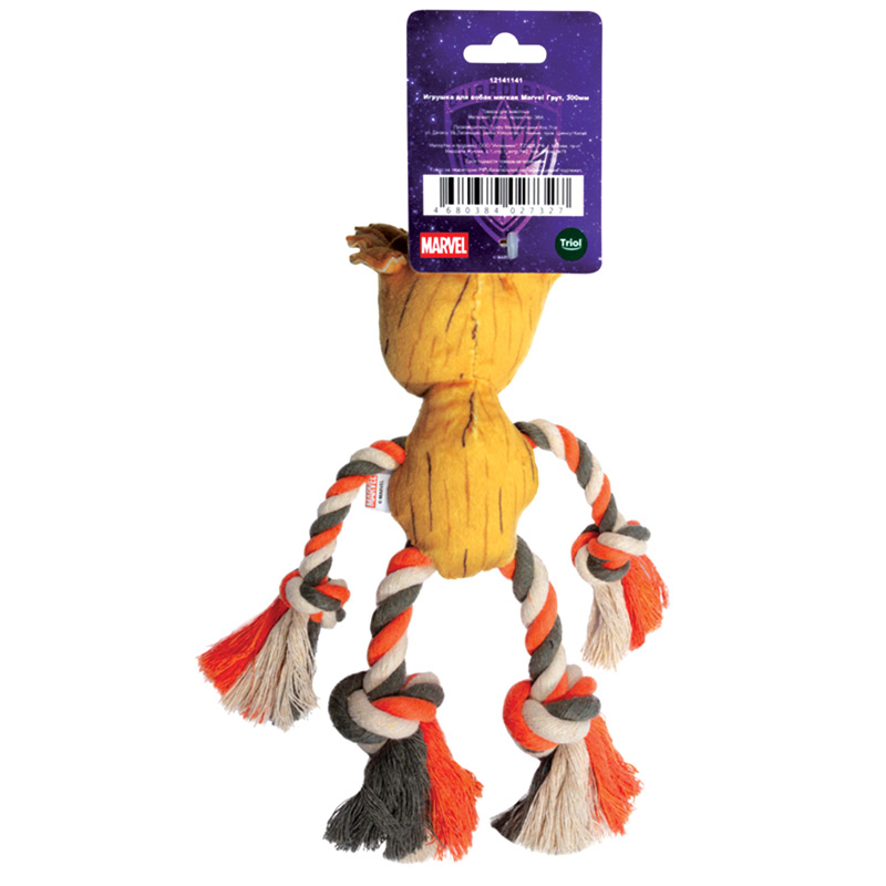 Игрушка в дизайне «Грут» подходит в качестве любимой забавы для собак различных пород. Тканевые руки и ноги сделаны из хлопковой веревки, что способствует очищению зубов, укреплению десен. Игрушка предназначена для игр, обучения, дрессировки.