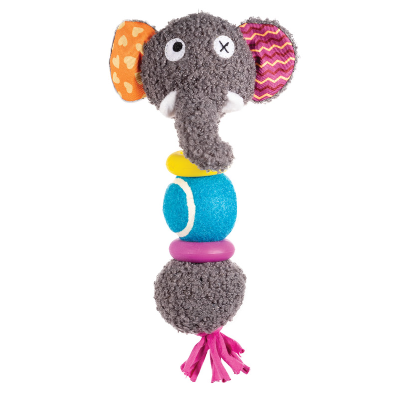 Эта оригинальная мягкая игрушка станет любимым развлечением для вашего питомца. Ее удобно таскать в зубах, грызть, трепать и прятать в самых укромных углах. Мягкий слоник выполнен из высококачественных материалов, что гарантирует безопасность животного. В мягкую игрушку интегрированы элементы различных фактур (веревочная ножка, тканевые ушки, резиновый шар и шайбы в основании туловища) – они не боятся механических повреждений и выдерживают даже самые активные игры. Цвет: серый. Размер изделия: 270*75*60мм.