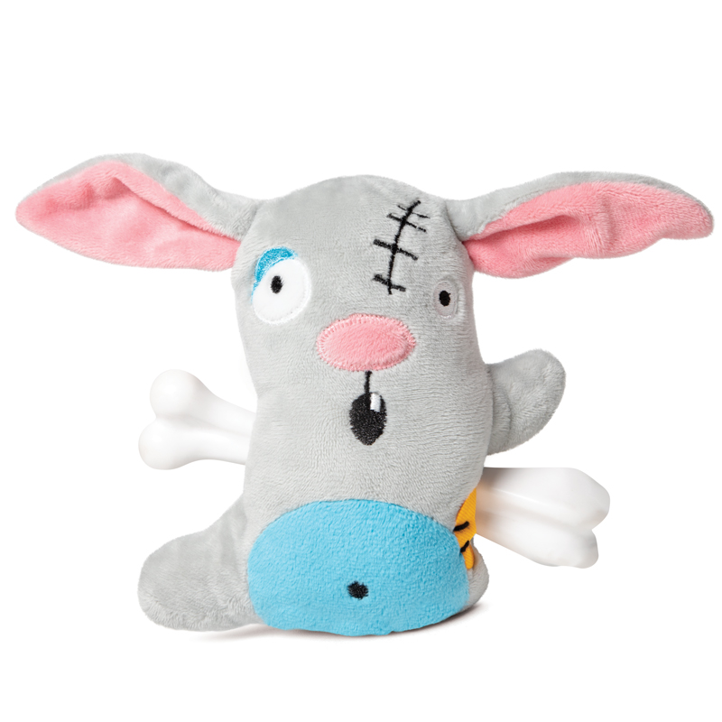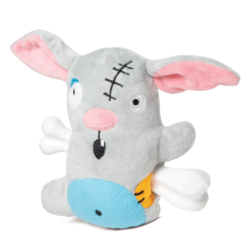 Забавная игрушка для собак "Заяц-разбойник" с пищалкой внутри выполнена из мягкого плюша, а косточка из термопластичной резины. Прочная и функциональная, такая игрушка отлично подходит для дрессировки и натаскивания собак, которые так любят грызть и трепать мягкие игрушки, кусать и носить их в зубах. Игрушка "Заяц-разбойник" доставит огромную радость собакам и их заботливым владельцам и послужит отличным подарком на Хэллоуин. Цвет: серый с черным, белым, голубым, розовым, оранжевым. Размеры: 140/180мм.