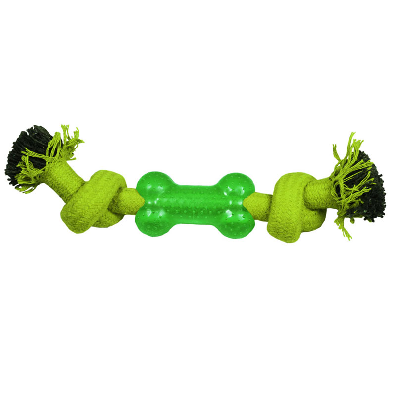 Собаки обожают играть с веревочными игрушками, так как их можно грызть, трепать и носить в зубах. Такие игрушки отлично массируют десны и очищают зубной налет во время игры. Цвет: красный, зеленый. Вес: 95г. Размер 45*30*240мм.