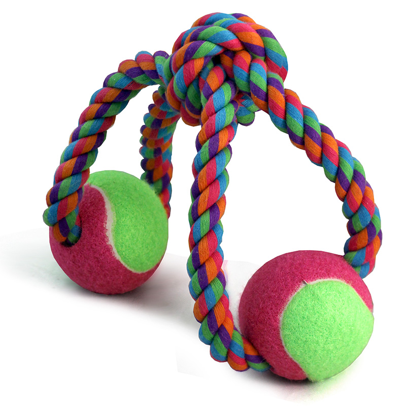 Веревка цветная с двумя мячами 280г. Предназначена для тяговых игр с собаками крупных пород. Хорошо развивает челюсть собаки. Удобная ручка - противоскользящая. Игры с Вашим питомцем помогают поддерживать его в хорошей форме. Выполнена из 100% натуральных материалов. Цвет: разноцветный. Размер d65*320*95мм.