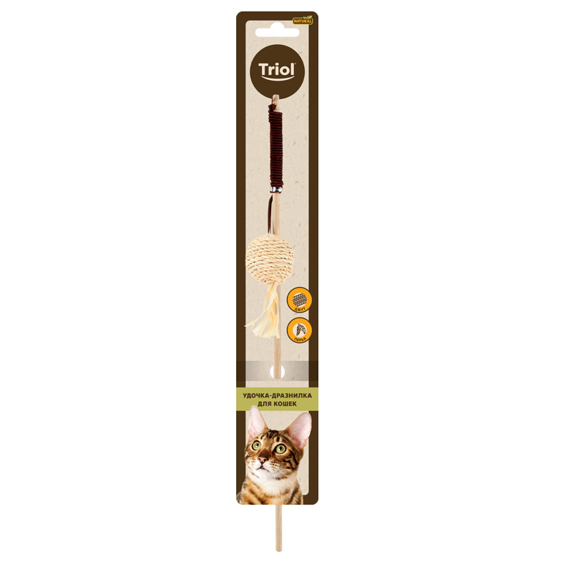 Игрушка-дразнилка для кошек из натуральных материалов "Мяч", d40/400мм, серия NATURAL, Triol