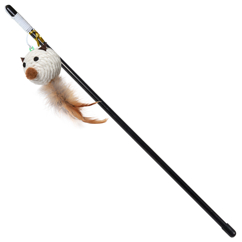 Благодаря подвижной игрушке на конце такая удочка-дразнилка способна надолго завладеть вниманием домашнего охотника. Игры с удочкой-дразнилкой способствуют поддержанию кошки в хорошей физической форме и обеспечивают питомца интересным и разнообразным досугом. Ручка удочки изготовлена из прочного пластика и прослужит максимально долго. А оригинальная игрушка из сизаля, декорированная пушистыми перьями станет любимым аксессуаром для времяпрепровождения. Цвет: коричневый, белый. Длина ручки - 460мм, размер игрушки - 50мм.