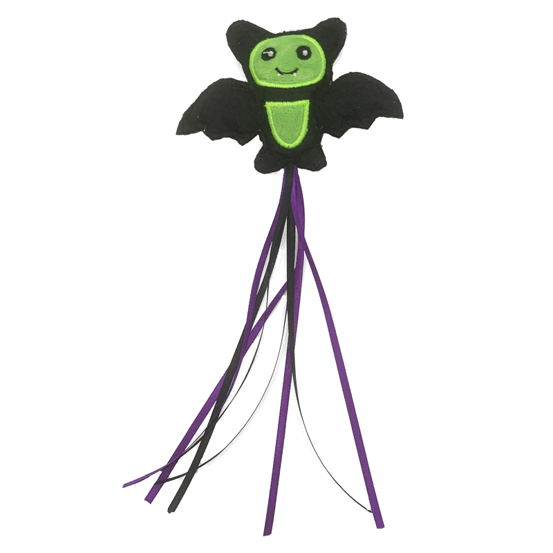 Удочка-дразнилка для кошек "Летучая мышь" несомненно привлечет внимание питомцев и всех окружающих своим необычным дизайном! Такая удочка и развлекает питомца, и дрессирует одновременно, помогая кошке также держать мыщцы в тонусе, развивать сообразительность и реакцию. Игрушка имеет прочную пластиковую основу и декорирована мышкой с длинным хвостом из лент - подвижные элементы привлекут даже самых пассивных кошечек, вовлекая их в процесс веселой охоты. Игрушка "Летучая мышь" доставит огромную радость питомцам и их заботливым владельцам и послужит отличным подарком на Хэллоуин. Цвет: черный с фиолетово-зеленым. Размер: длина палочки - 430мм, длина игрушки без хвоста - 80мм.