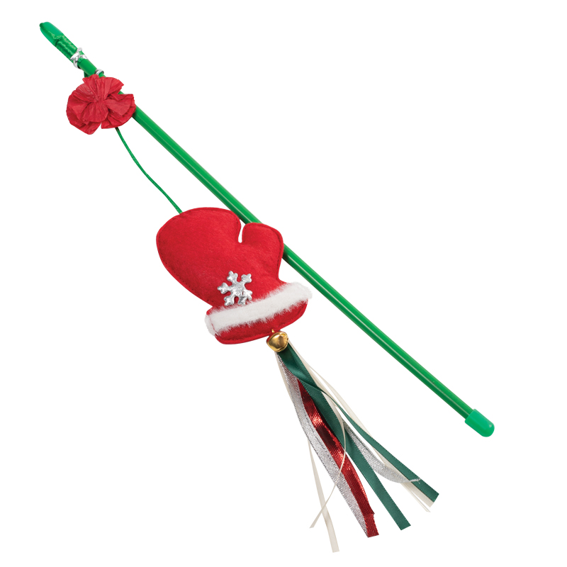 Яркая и функциональная удочка-дразнилка - это всегда актуальный аксессуар для усатых-полосатых. Такая удочка и развлекает питомца, и дрессирует одновременно, помогая кошке также держать мыщцы в тонусе, развивать сообразительность и реакцию. Изделие имеет прочную основу и декорирована оригинальными элементами в новогодней стилистике. Подвижная игрушка на шелковистом шнуре с мелодичным бубенчиком и яркими ленточками привлечет даже самых пассивных кошечек, вовлекая их в процесс веселой охоты. Удочка "Варежка" станет оригинальным подарком вашему любимцу к Новому году! Цвет: красно-зеленый с белым. Размер: 400*60*15мм.