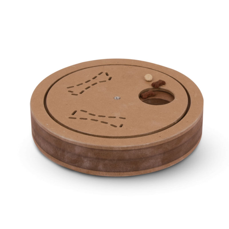 Эта развивающая игрушка для собак и кошек - универсальный аксессуар, который не просто скрашивает досуг питомца, но и помогает в дрессировке, тренирует память питомца и развивает ее мышление. Игрушка выполнена в виде двустороннего круга, на каждой из сторон которого - своя головоломка: помогающая тренировать навыки выполнения команд - для собак и развивающая интеллект - для кошек. Изделие также имеет специальные отверстия, в которые можно положить кусочки лакомств, чтобы питомцу интереснее было выполнять задания. Цвет изделия: бежевый. Размер: d200х40мм.