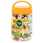 Кальцинированные косточки с курицей – это полезное угощение для профилактики зубного камня, здоровья структуры костных тканей и обеспечения функциональности кровообращения, обогащенное кальцием, фосфором и железом. Косточки расфасованы в пластиковые банки, благодаря чему потребитель может выбрать: покупать целую банку или поштучно. Банку с эргономичной ручкой удобно хранить и легко транспортировать. Вес нетто 450г. В банке 85-90 косточек.