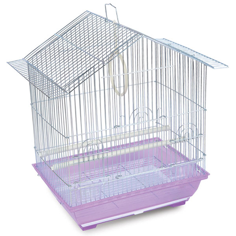 Оригинальная клетка для птиц с фигурной крышей - полезный аксессуар для владельцев пернатых питомцев. Надежная, просторная и очень удобная, такая клетка займет достойное место в любом интерьере, отвечая всем жизненным потребностям домашних любимцев. В комплектацию изделия входят 2 кормушки, 2 пластиковые жердочки и качели. Клетка оборудована удобной ручкой для переноски и специальным пластиковым наружным поддоном, облегчающим процесс уборки. Размер изделия: 345х260х440мм.