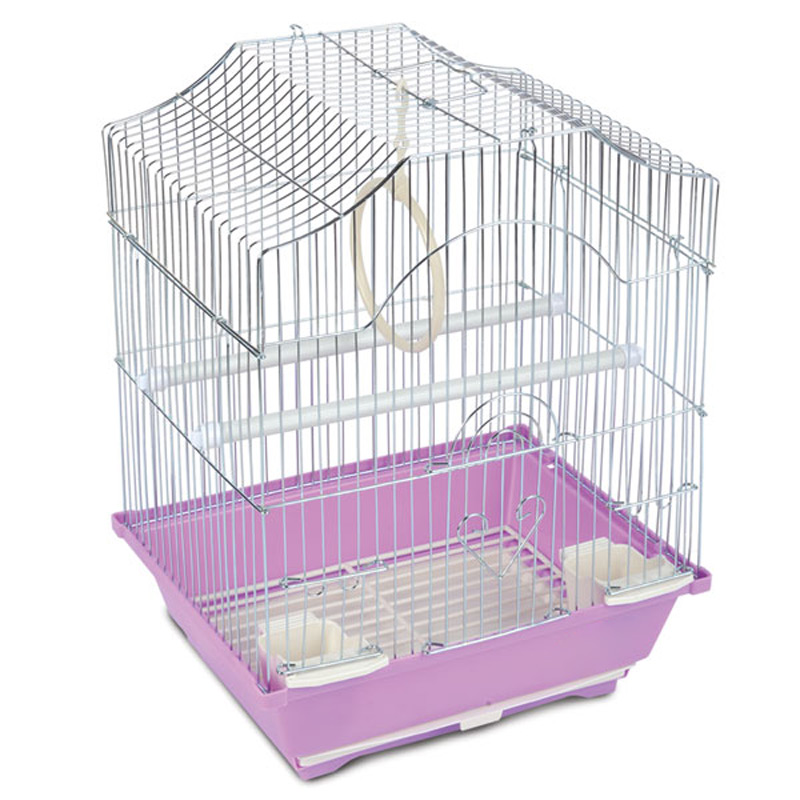 Эффектная клетка для птиц с фигурной крышей - полезный аксессуар для владельцев пернатых питомцев. Прочная и удобная, такая клетка занимает совсем немного места и отвечает всем потребностям пернатых. В комплектацию изделия входят 2 внешние кормушки, 2 жердочки и качели. Клетка оборудована удобной ручкой для переноски и специальным пластиковым наружным поддоном, облегчающим процесс уборки. Размер изделия: 300х230х390мм.