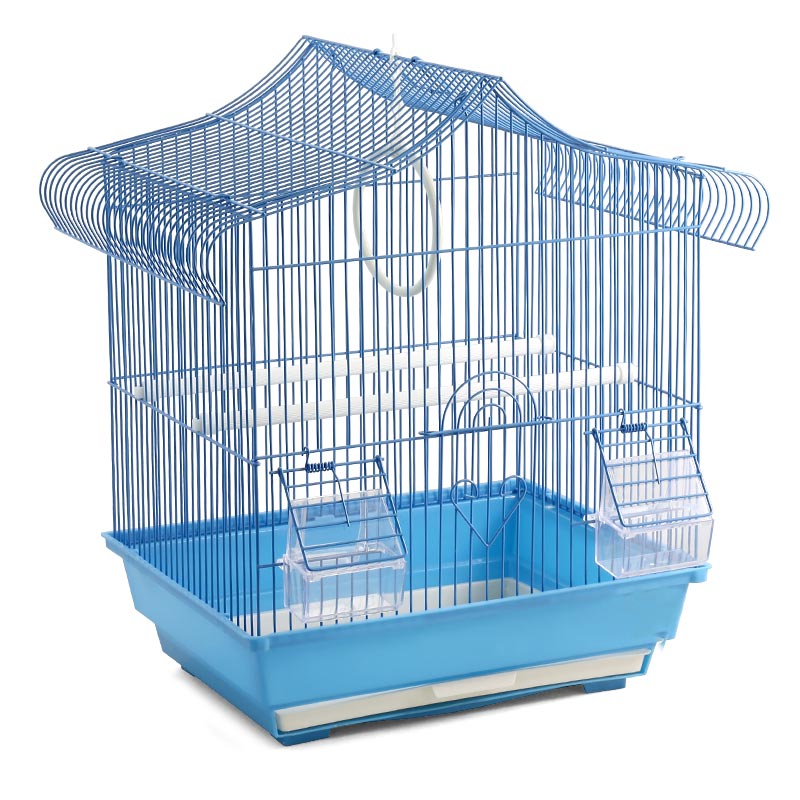 Эффектная клетка для птиц с фигурной крышей - полезный аксессуар для владельцев пернатых питомцев. Надежная, просторная и очень удобная, такая клетка займет достойное место в любом интерьере, отвечая всем жизненным потребностям домашних любимцев. В комплектацию изделия входят 2 кормушки, 2 пластиковые жердочки и качели. Клетка оборудована удобной ручкой для переноски и специальным пластиковым наружным поддоном, облегчающим процесс уборки. Размер изделия: 345х280х500мм.