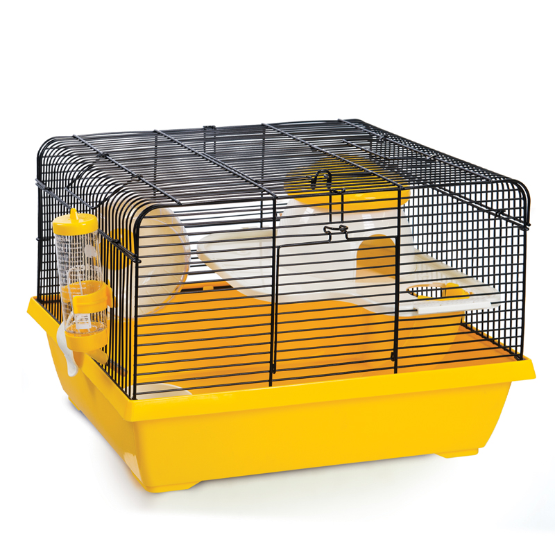 Клетка прямоугольной формы с горизонтальными прутьями - удобный и функциональный дом для любого грызуна: он занимает совсем немного места и отлично подходит для мелких домашних животных вроде крыс, мышей и хомяков. В комплектацию изделия также входят: пластиковая миска, поилка, уютный домик и беговое колесо. Размер изделия: 425х310х280мм