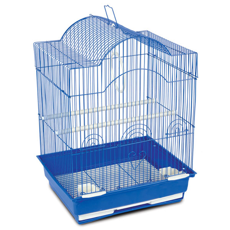 Оригинальная клетка для птиц с фигурной крышей - полезный аксессуар для владельцев пернатых питомцев небольшого размера. Прочная, стильная и удобная, такая клетка займет достойное место в любом интерьере, отвечая всем жизненным потребностям пернатых питомцев. В комплектацию изделия входят 2 кормушки-поилки, 2 жердочки и качели. Эмалированная клетка также оборудована удобной ручкой для переноски и специальным пластиковым наружным поддоном, облегчающим процесс уборки. Размер изделия: 350х280х460мм.