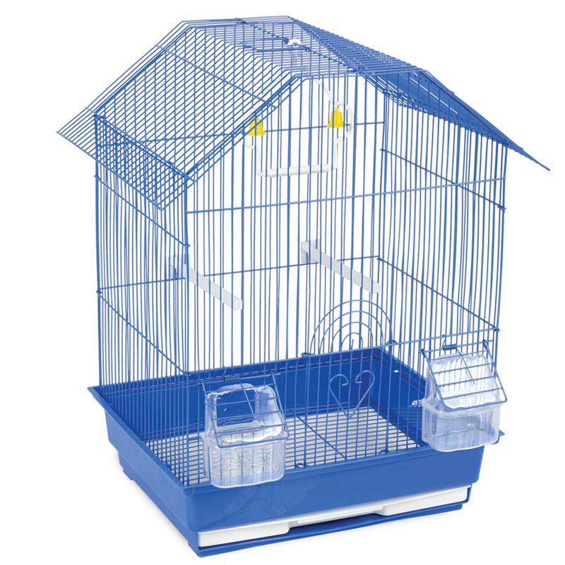 Оригинальная клетка для птиц с фигурной крышей - полезный аксессуар для владельцев пернатых питомцев небольшого размера. Прочная, стильная и удобная, такая клетка займет достойное место в любом интерьере, отвечая всем жизненным потребностям пернатых питомцев. В комплектацию изделия входят 2 кормушки-поилки, 2 жердочки и качели. Эмалированная клетка также оборудована удобной ручкой для переноски и специальным пластиковым наружным поддоном, облегчающим процесс уборки. Размер изделия: 350х280х460мм.
