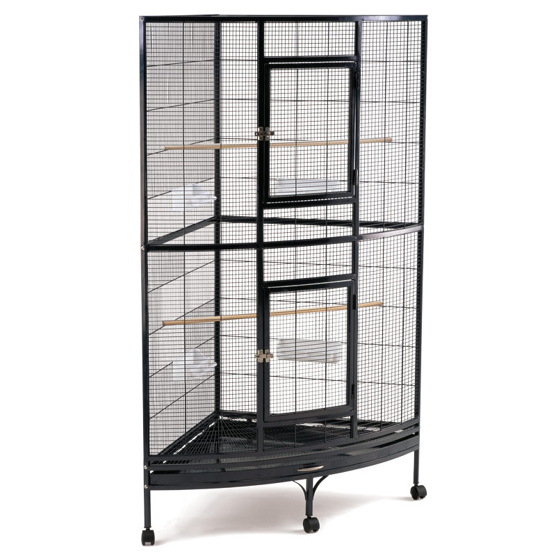 Функциональная угловая стальная клетка, предназначенная для птиц и попугаев крупных размеров. Эмалированные прутья не гнутся, не облупляются и не гремят. Клетка имеет удобную большую дверцу, запирающуюся на плотный замок. Такая клетка займет достойное место в любом интерьере, отвечая всем жизненным потребностям домашних любимцев. Клетка оборудована специальным пластиковым наружным поддоном, облегчающим процесс уборки. Цвет: белый, черный. Размер изделия: 1000х640х1590мм.