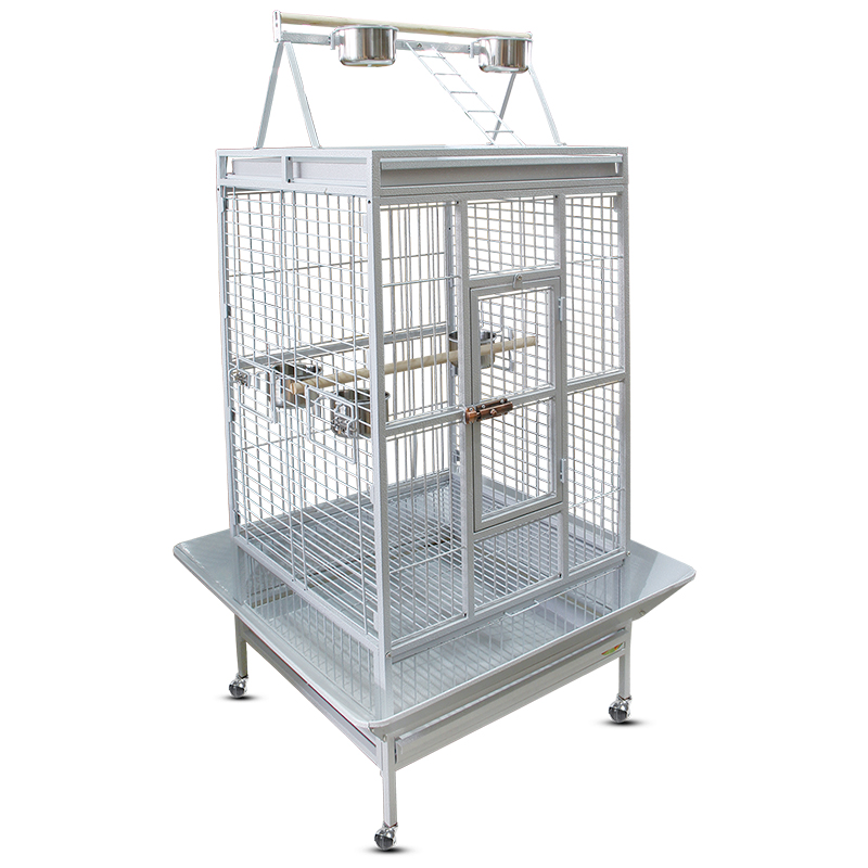 Прочная, эффектная и функциональная стальная клетка на колесах, предназначенная для птиц и попугаев крупных размеров. Ее прутья не гнутся, не облупляются и не гремят. Клетка имеет большую удобную дверцу, надежно запирающуюся на плотный замок, а за счет дополнительной внешней конструкции выгуливать птиц можно прямо на крыше изделия. Такая клетка займет достойное место в любом интерьере, отвечая всем жизненным потребностям пернатых питомцев. Клетка также оборудована специальным выдвижным поддоном, облегчающим процесс уборки. Цвет: белый. Размер изделия: 830х770х1720мм.