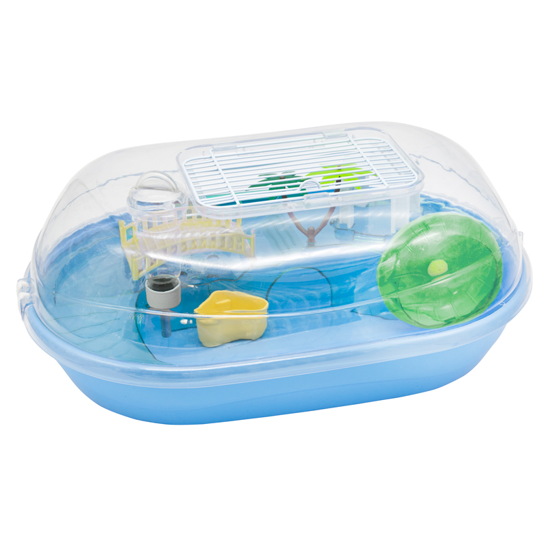 Эта оригинальная клетка обтекаемой формы, напоминающая сказочный оазис в океане песка, станет удобным и функциональным домом для мелких домашних животных вроде мышей и хомяков. В нем они найдут уединение, еду и питье, смогут укрыться от излишнего внимания на нижнем уровне, а отдохнув, поддержать отличную физическую форму в беговом колесе или исследовать все уголки своего оазиса: подняться по лесенке на второй уровень, пробежаться по мостику или заглянуть в шатер. Прозрачные стенки взамен стандартным решеткам не мешают обзору. В комплектацию изделия входят: дом-шатер, пальма, мостик, кормушка, поилка и беговое колесо. Верхний уровень обеспечивает вставная пластиковая деталь. Цвет: синий. Размер изделия: 440*313*170мм.