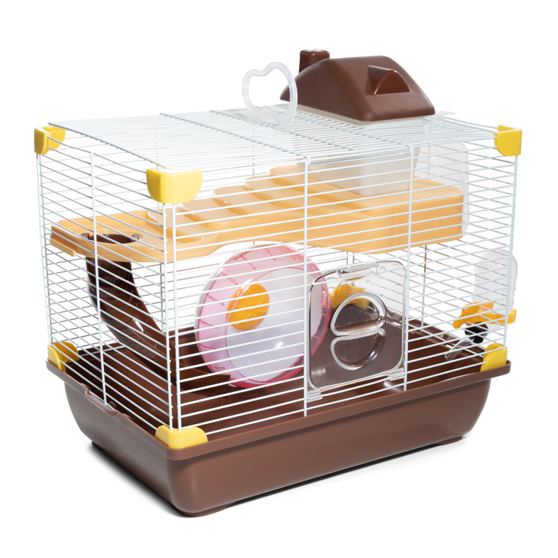 Уютная клетка прямоугольной формы с горизонтальными прутьями - удобный и функциональный двухэтажный дом для грызунов: он занимает совсем немного места и отлично подходит для содержания мышей и хомяков. В комплектацию изделия входят: домик, пластиковая миска, поилка с носиком, беговое колесо и горка. Кроме того, клетка оборудована удобной ручкой на крыше, облегчающей процесс транспортировки. Клетка в красивой упаковке - отличный подарок любителям грызунов. Цвет решетки: белый. Цвет поддона: коричневый. Размер между прутьями: 9мм. Размер изделия: 335*235*270мм (высота без учета домика).